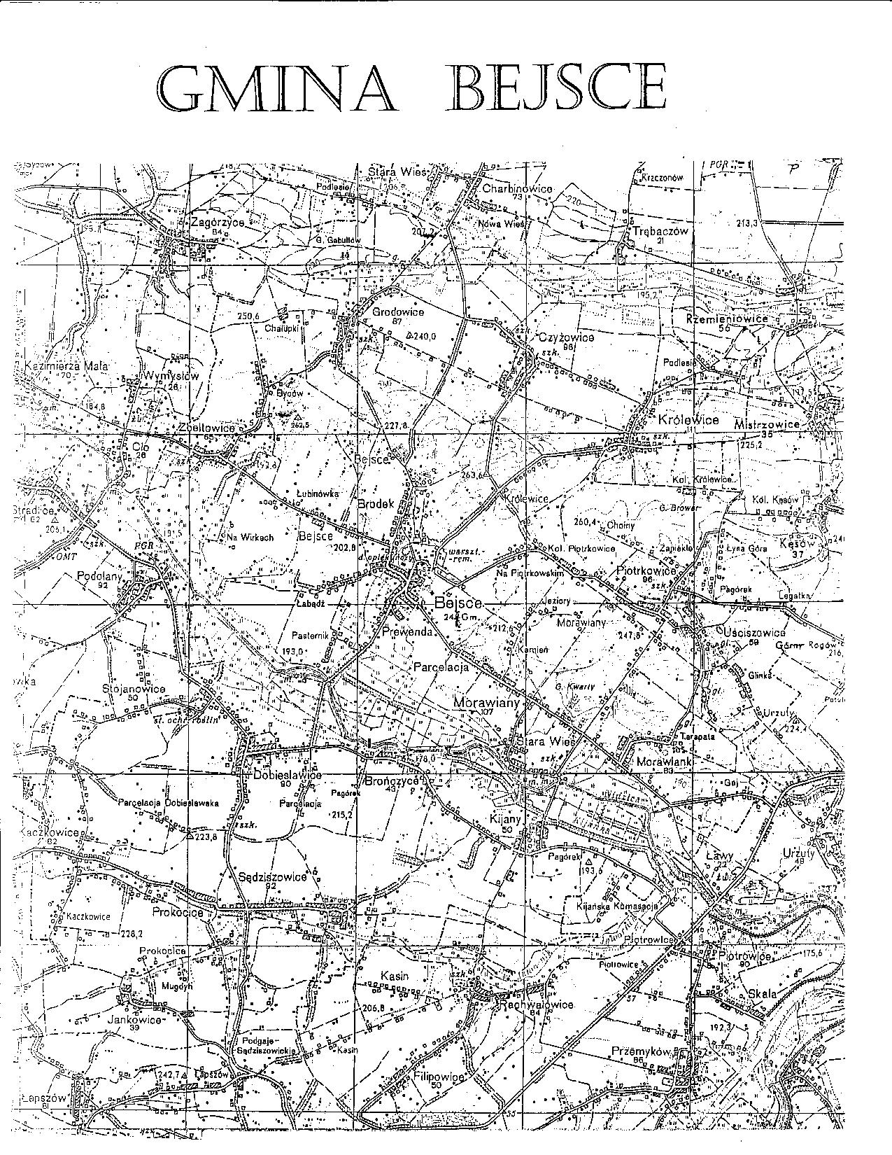 Plan sytuacyjny Bejsce i okolica.
